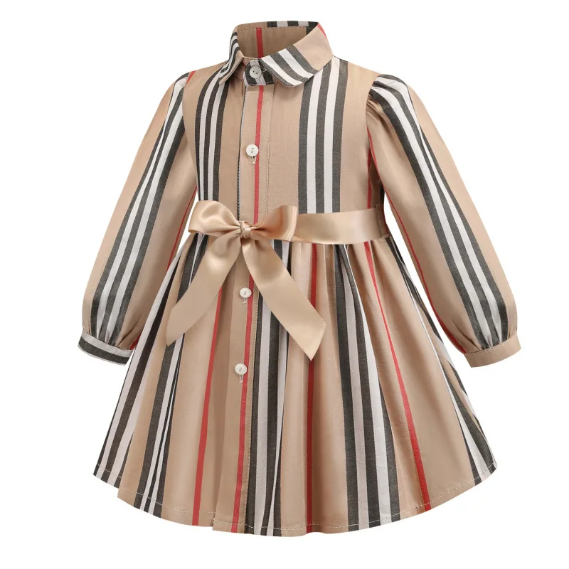 . (Zniżka 30%) Tanie Girls Dress z długim rękawem 2019 jesienne sukienki dla dzieci dla dziewczynek w paski Bow dzieci sukienki księżniczki maluch dziewczyna odzież 2 6 lat Ceny.