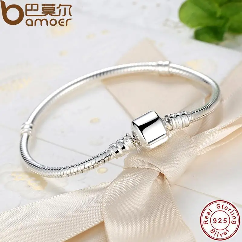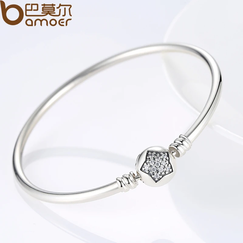 . (Zniżka 30%) Tanie BAMOER autentyczne 100% 925 srebrny łańcuszek żmijka łańcuch bransoletka i bransoletka Pave gwiazda cyrkonia CZ DIY biżuteria Ceny.