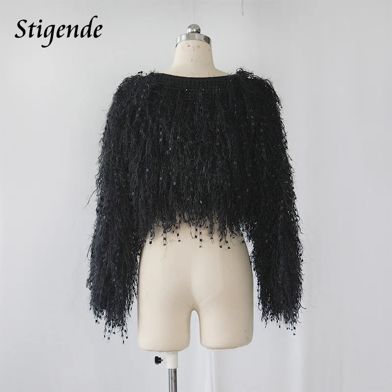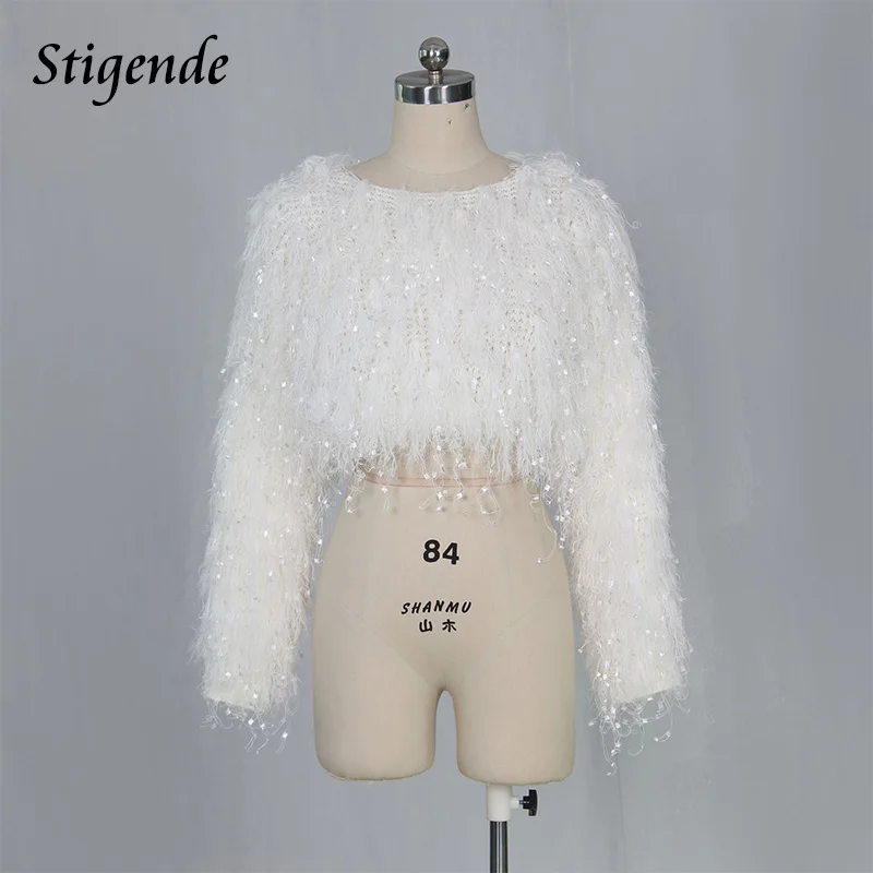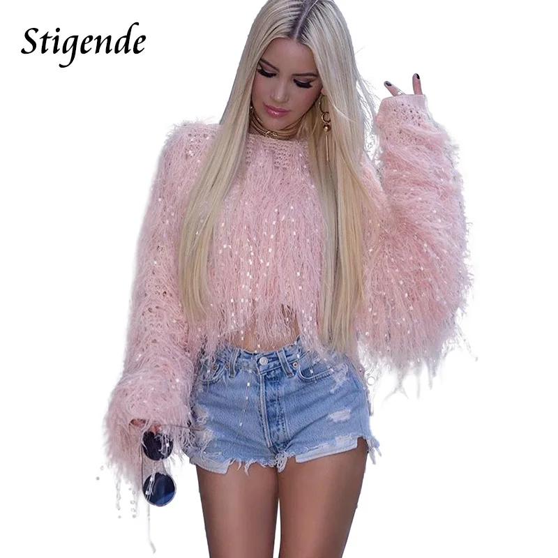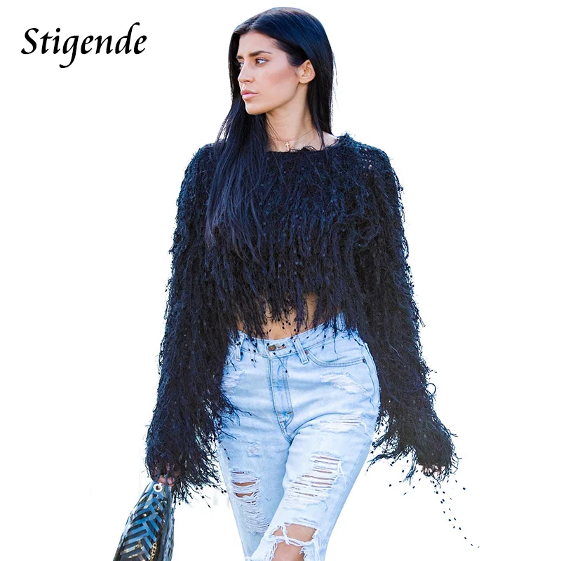 . (Zniżka 37%) Skup Tanie Stigende frędzle sweter w stylu crop sweter jesienna kobieta sweter z dekoltem w łódkę dzianinowe swetry elegancka seksowna szydełka z litego materiału Clubwear Ceny.