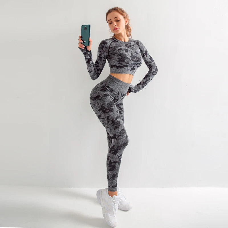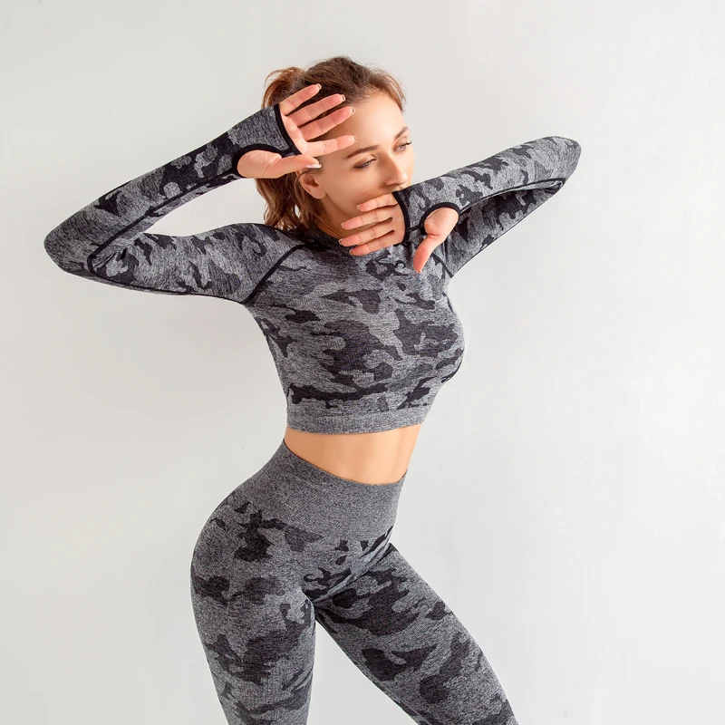. (Zniżka 39%) Skup Zestaw do jogi kobiety bezszwowy fitness odzież biustonosz do jogi Sport topy z długimi rękawami kamuflaż siłownia leginsy garnitur trening sportowy Najtaniej Cena.