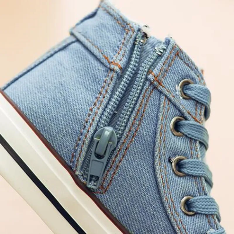Special Offer Wiosna jesień moda wysoka pomoc brezentowych butów dzieci mieszkania oddychające dorywczo Denim boczny zamek błyskawiczny chłopcy dziewczęta Sneakers 04 Discount 40% Today!