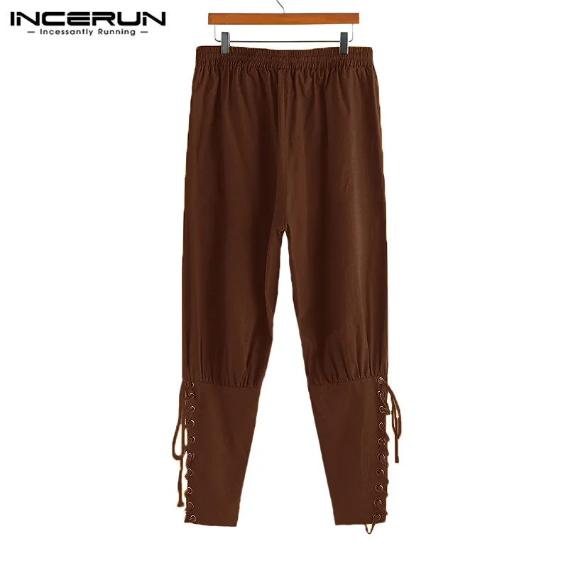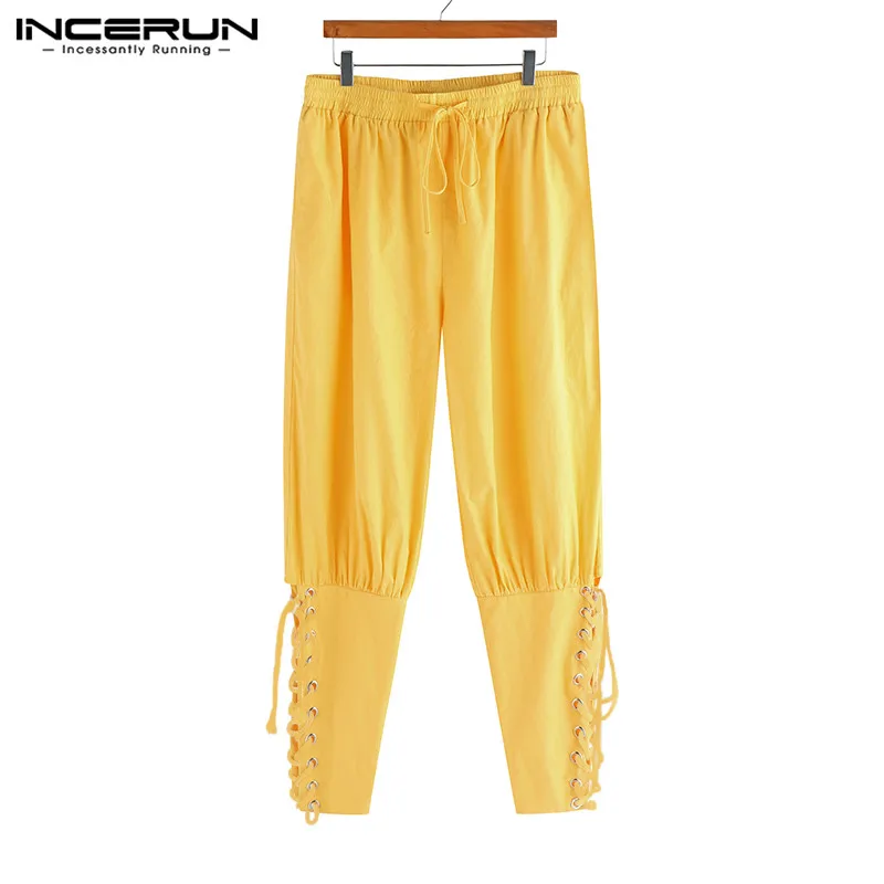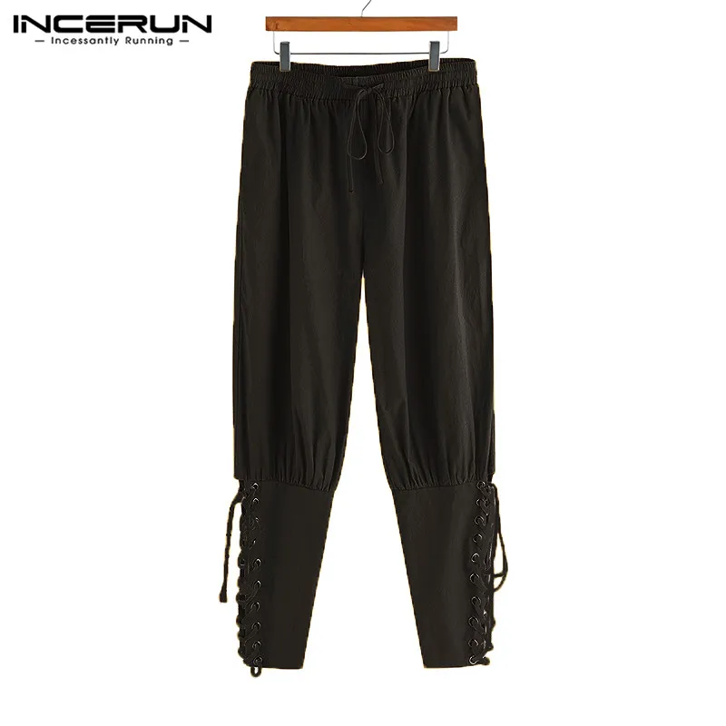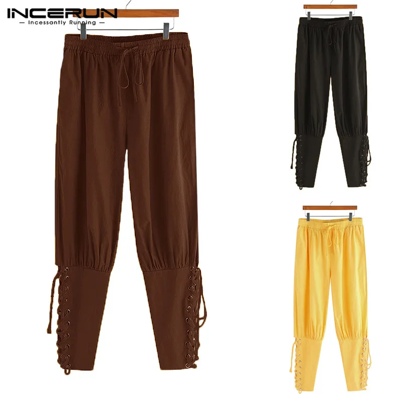 Special Offer Męskie spodnie zasznurowane spodnie męskie jednokolorowe kostiumy Cosplay INCERUN S 5XL Plus rozmiar luźne spodnie vintage Men Discount 42% Today!