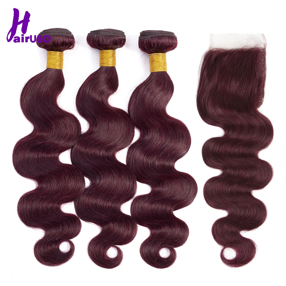 . (Zniżka 47%) Tanie HairUGo malezyjski ciało pasma falowanych włosów z zamknięciem 99J burgundowe pasma ludzkich włosów z farbowaniem ombre z zamknięciem włosy inne niż remy tkactwo Ceny.