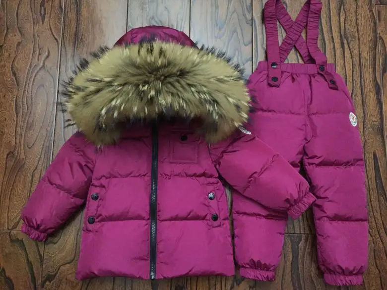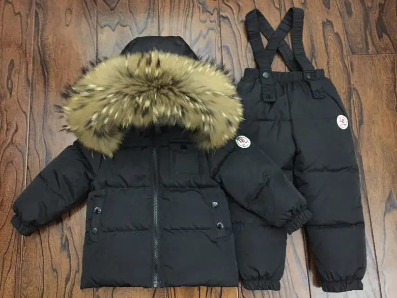 . (Zniżka 48%) Skup Rosyjski zimowy kombinezon puchowy Super ciepłe zimowe garnitury dla dzieci chłopcy dziewczyna kurtka z puchu kaczego + kombinezony 2 szt. Zestaw odzieży dla dzieci odzież na śnieg Najtaniej Ceny.
