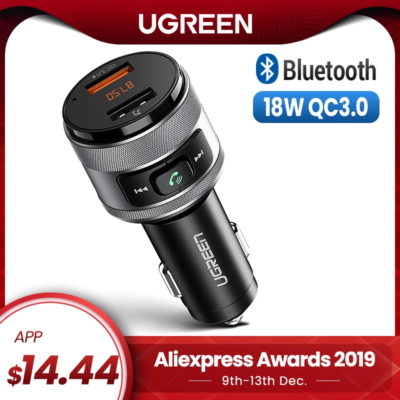 . (Zniżka 49%) Tanie Ugreen USB ładowarka samochodowa nadajnik bluetooth fm QC szybka ładowarka 3.0 szybka ładowarka do Xiaomi Samsung iPhone Huawei QC3.0 ładowarka Cena.