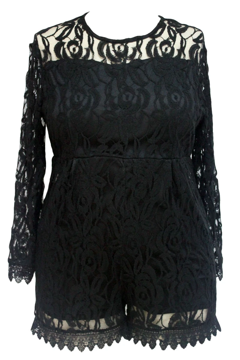 Special Offer Adogirl Plus rozmiar L 6XL kobiety koronkowe Romper pusty jednolity Out kombinezony z długim rękawem seksowne szorty Playsuit panie Clubwear body Discount 50% Today!