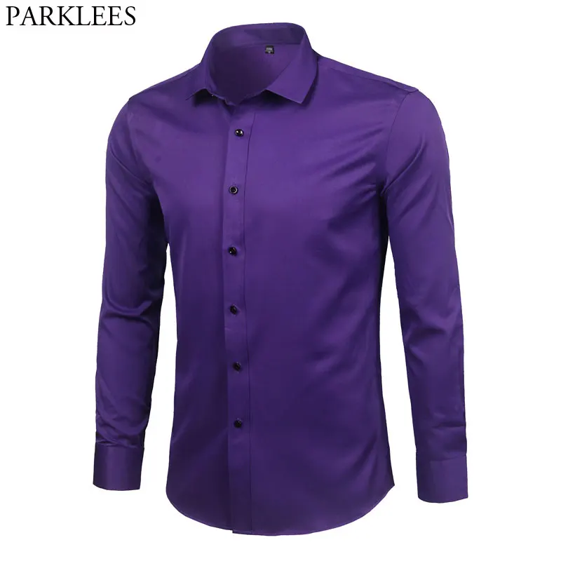 Special Offer Fioletowy mężczyzn włókno bambusowe sukienka koszula 2018 nowy slim fit z długim rękawem koszulka Homme, bez żelazka, łatwy w pielęgnacji formalna koszula dla mężczyzn Discount 50% Today!