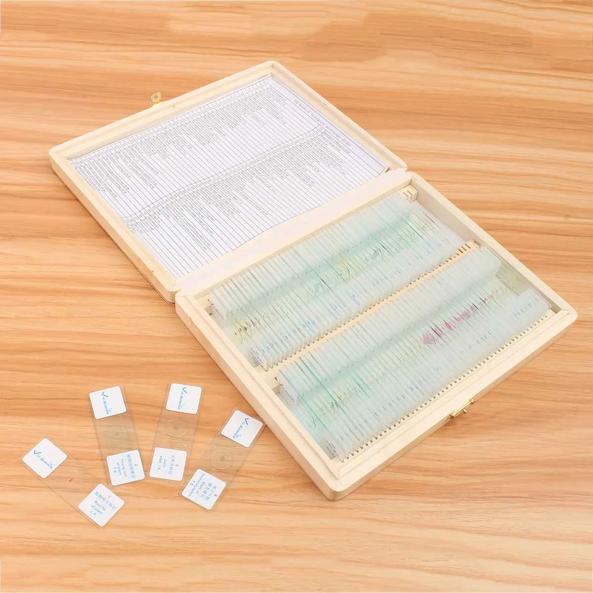 . (Zniżka 51%) Skup 100 sztuk zestaw szkiełka mikroskopowe próbki szkła przygotowane podstawowe nauki biologiczne próbki pokrywa zrazy drewniane pudełko przenośne Najtaniej Ceny.