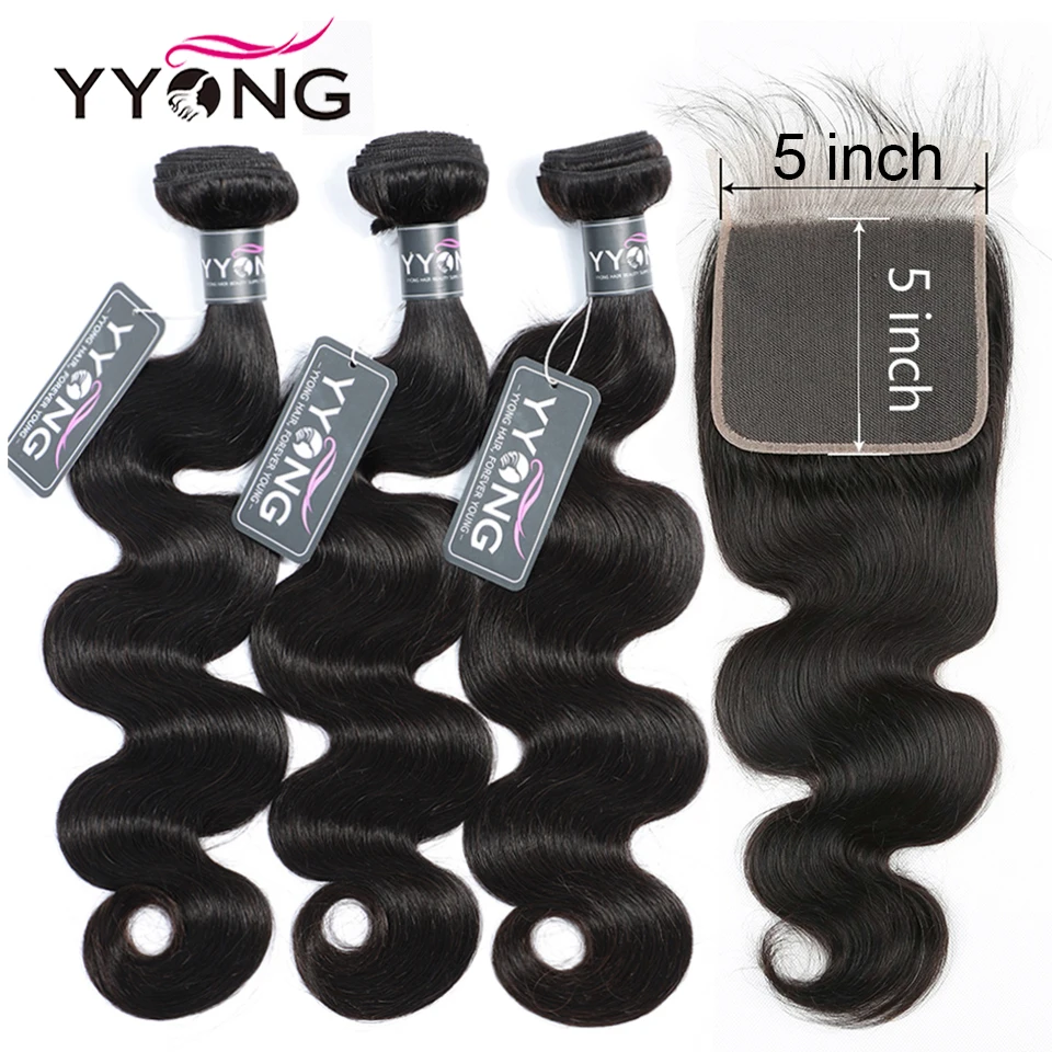 Special Offer Yyong włosów 5x5 zamknięcie z zestawy brazylijski ciało fala wiązki z zamknięciem 4 5 sztuk dużo Remy wiązki ludzkich włosów z zamknięciem Cheveux Discount 56% Today!