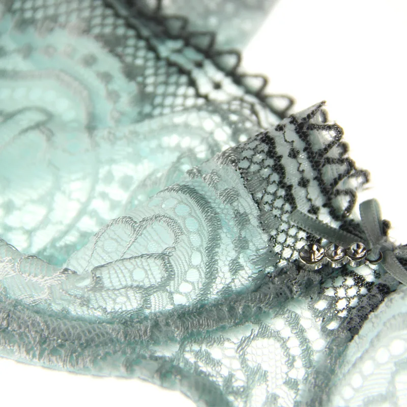 Special Offer Młoda dziewczyna ultracienki biustonosz half Cup Plus rozmiar D puchar koronki prześwitujące biustonosze zestaw Sexy zielona bielizna zestawy dla kobiet drążą biustonosz Discount 60% Today!
