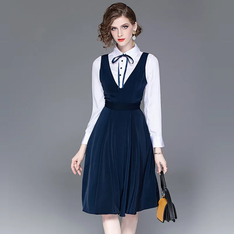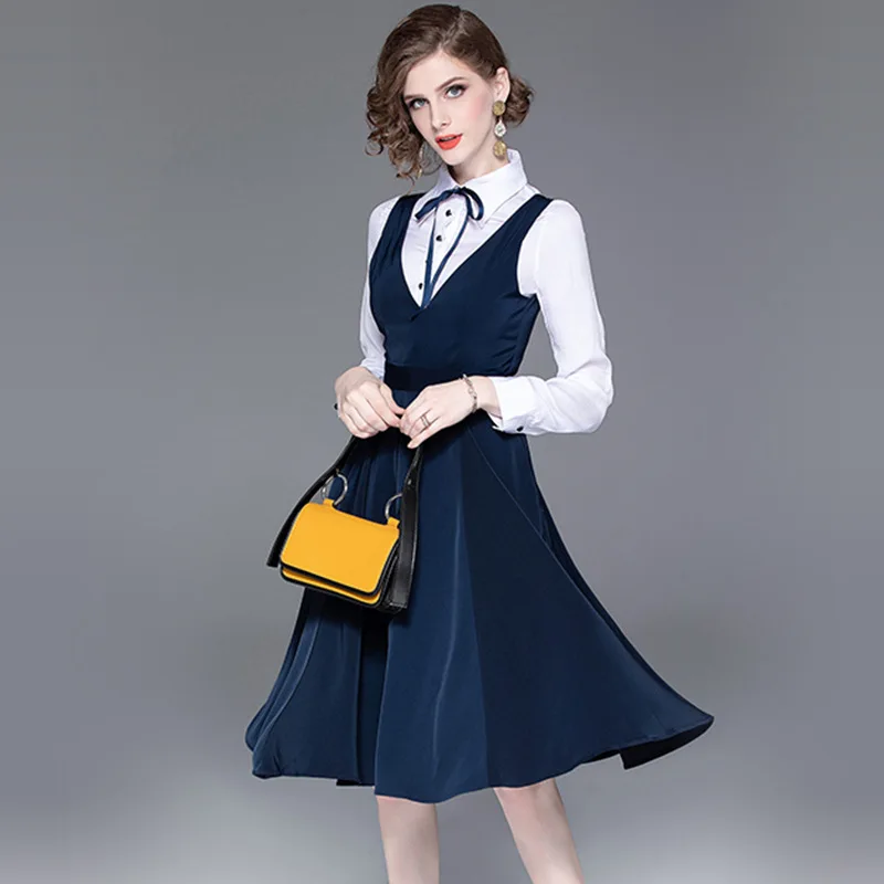 Special Offer 2019 nowy elegancki 2 sztuka zestaw kobiety preppy styl dwa kawałki zestaw biały sukienka ensemble femme 2 sztuk ubrania damskie Discount 0% Today!