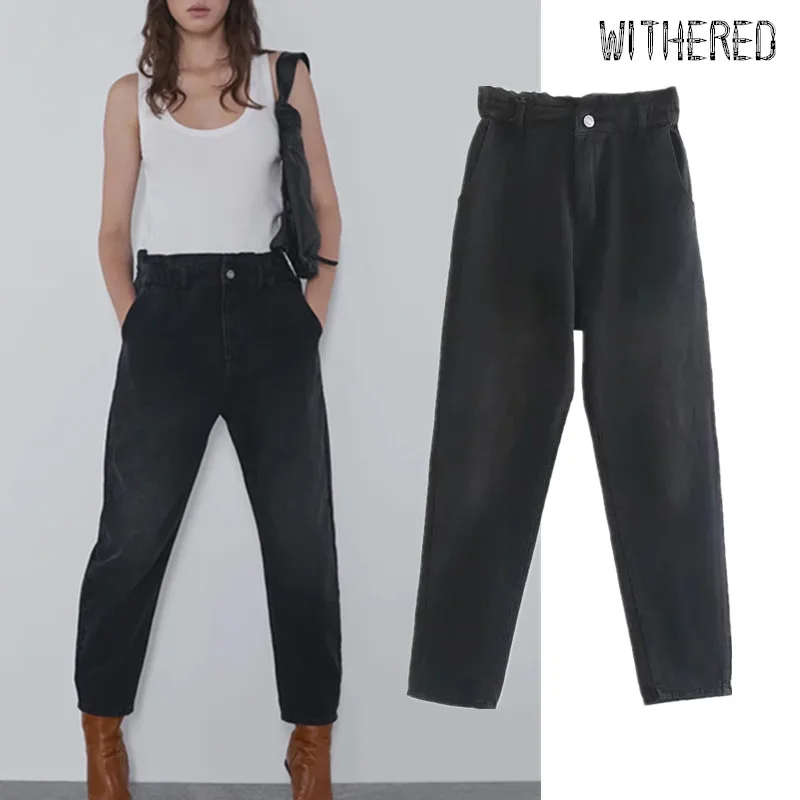 . (Zniżka 0%) Skup Tanie Zwiędły główna ulica zbierać talii kieszenie dżinsy dla mamy kobieta wysokiej talii dżinsy myte vintage luźne harem damskie dżinsy typu boyfriend Cena.