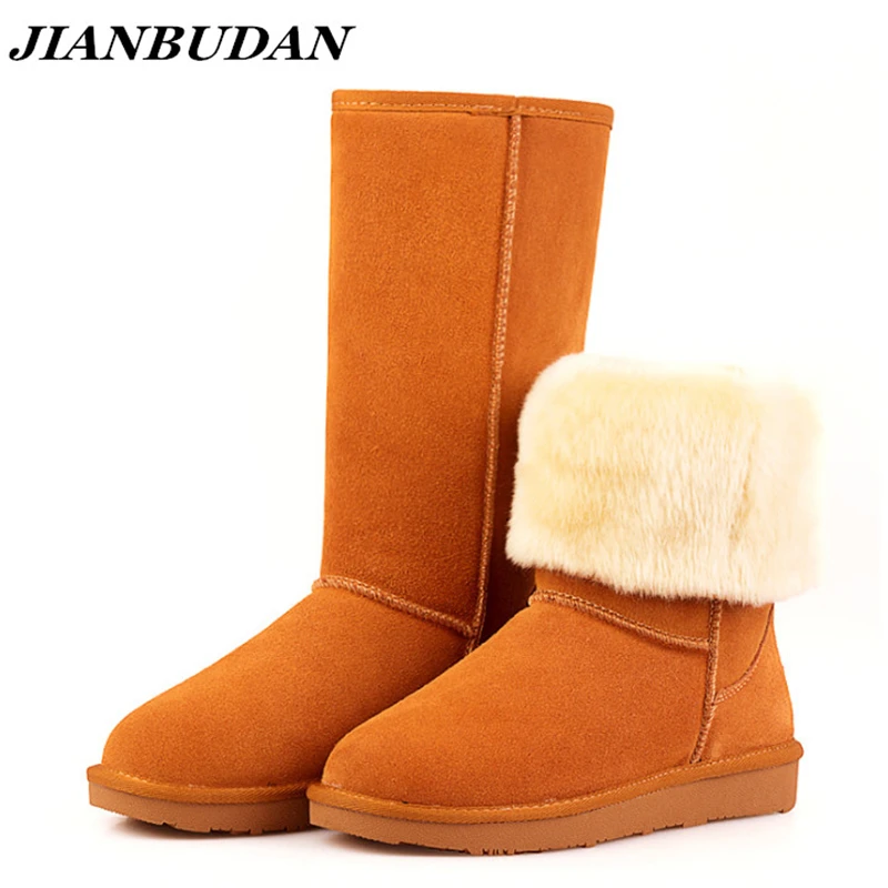 Special Offer Oryginalne skórzane damskie zimowe wysokie buty wysokiej jakości skóry wołowej śnieg buty 2020 nowy projekt marki pluszowe futro płaska podeszwa ciepłe buty Discount 24% Today!