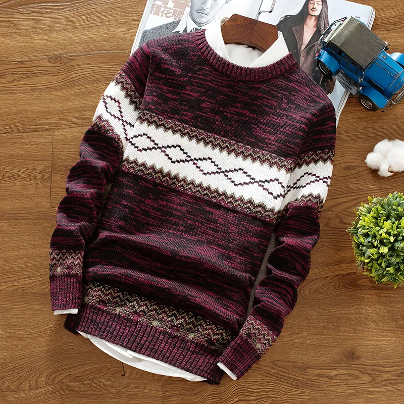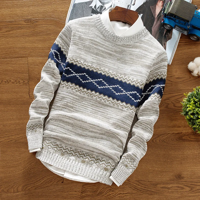 Special Offer Wiosenna i jesienna męska pulower z okrągłym dekoltem ciepła casualowa dzianinowa długa koszula, modna osobowość wąski w paski młodzieżowy dziki sweter Discount 27% Today!