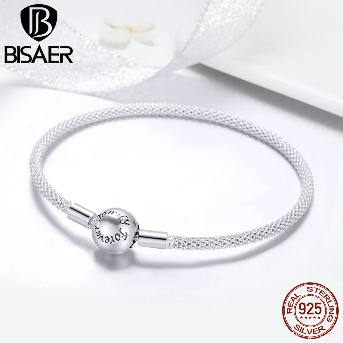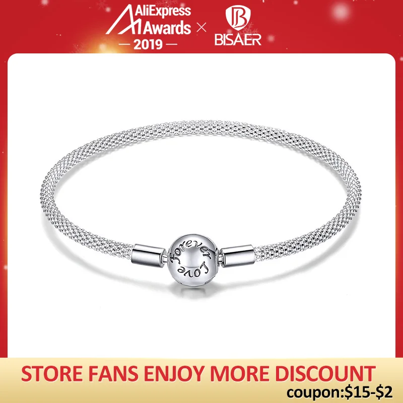 Special Offer BISAER gorąca sprzedaż 925 srebrny łańcuszek żmijka łańcuch wieczna miłość okrągły zapięcie kobiety bransoletki srebro biżuteria Pulseira ECB105 Discount 31% Today!