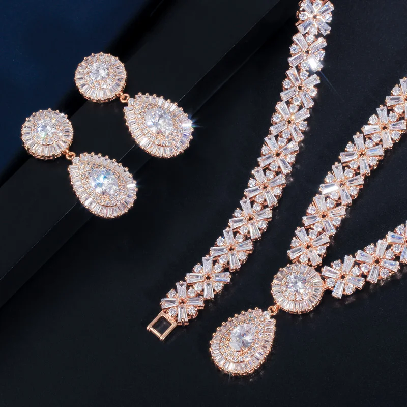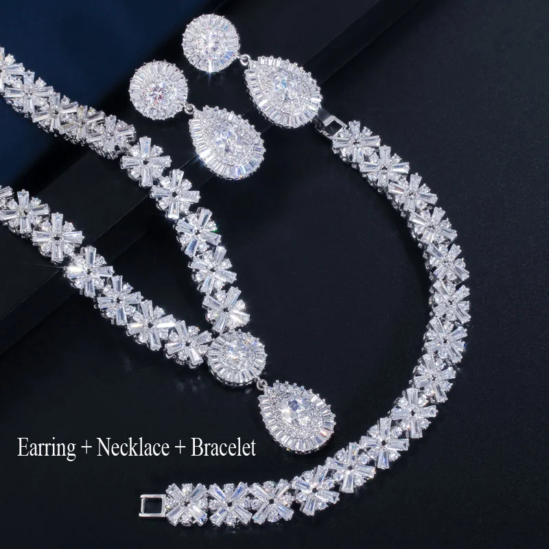 Special Offer CWWZircons ekskluzywny dubaj pokryte złotem biżuteria luksusowy kwadratowe cyrkonie naszyjnik kolczyki bransoletka Party komplet biżuterii damskiej T053 Discount 35% Today!