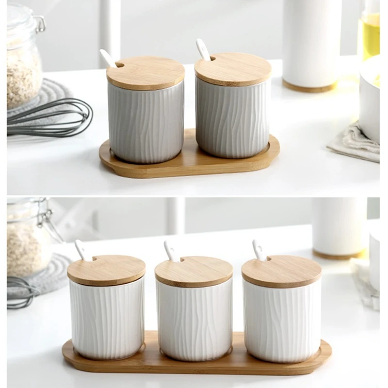 Special Offer 300ML Nordic ceramiczny słoik na przyprawy zestaw buteleczek pieprz sól butelka pojemnik przechowywanie przyprawy przyprawa uchwyt na półkę z pokrywką łyżki Discount 35% Today!