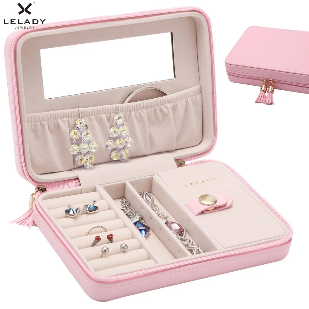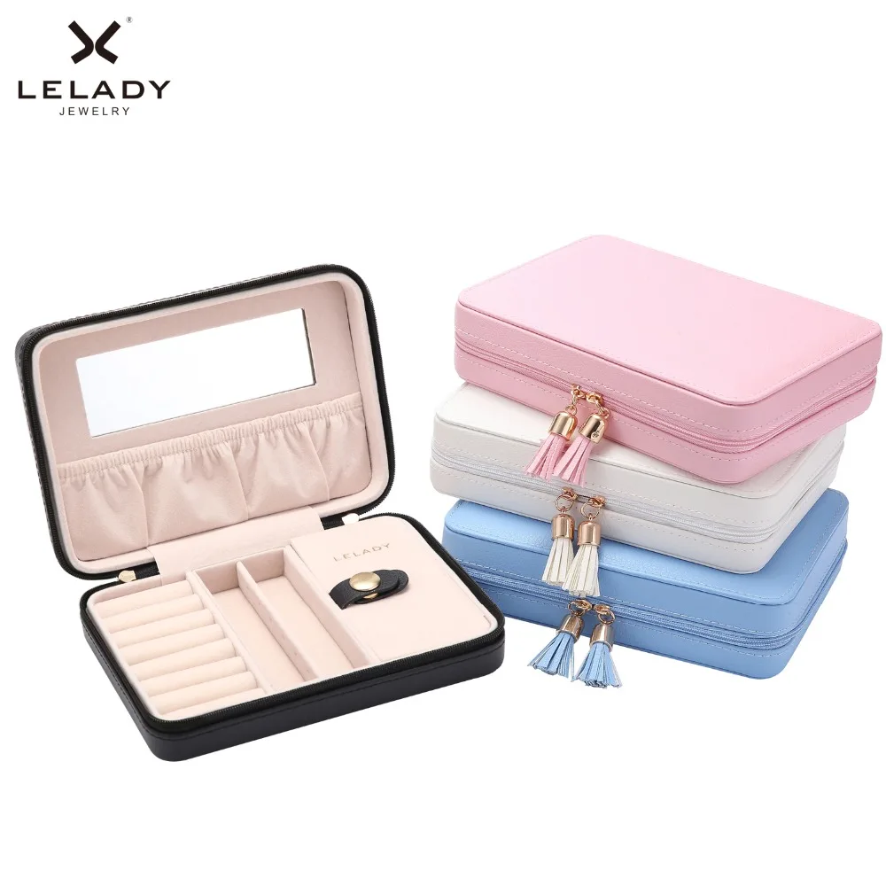 Special Offer LELADY 18*5*13cm przenośne podróży małe pudełko na biżuterię schowek organizator Box z lustrem wewnątrz aksamitna skóra biżuteria Box dla kobiet Discount 36% Today!