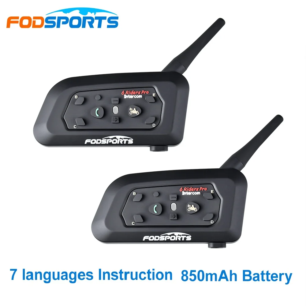. (Zniżka 39%) Skup Fodsports 2 sztuk V6 Pro zestaw słuchawkowy bluetooth do kasku domofon 6 zawodnicy 1200M bezprzewodowy Intercomunicador bt interphone Najtaniej Ceny.