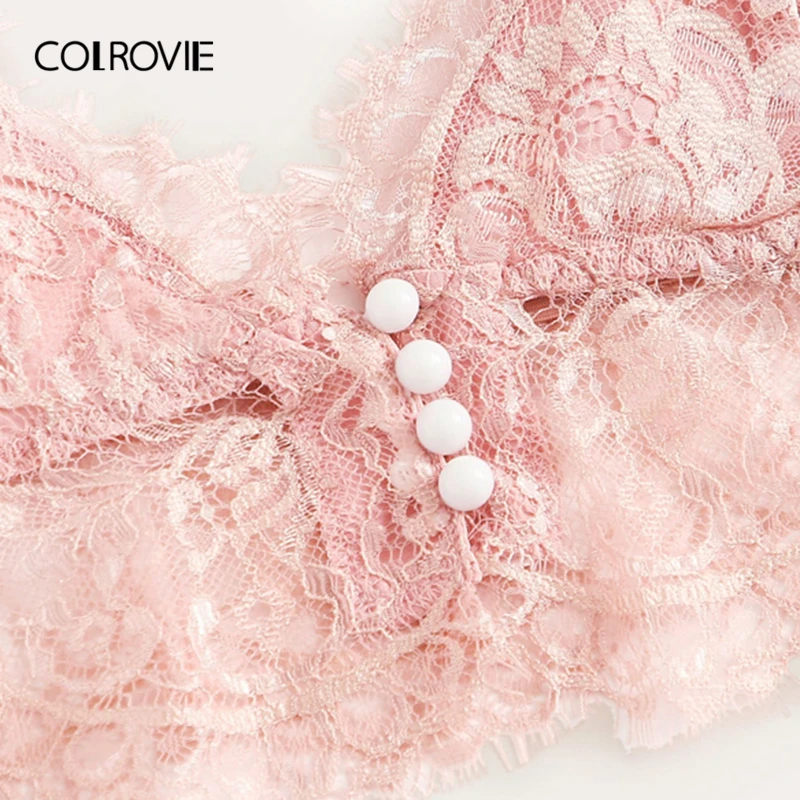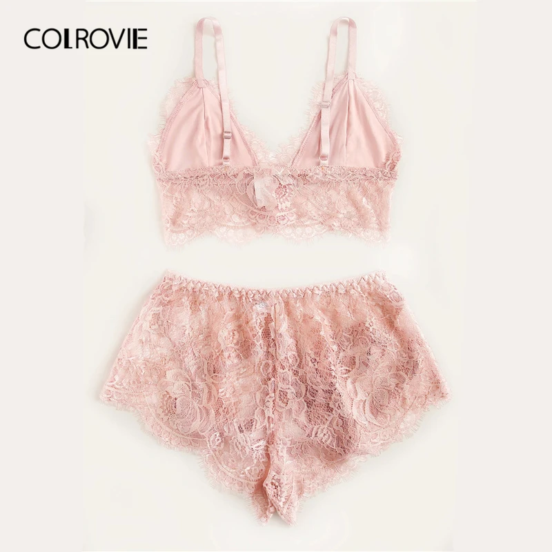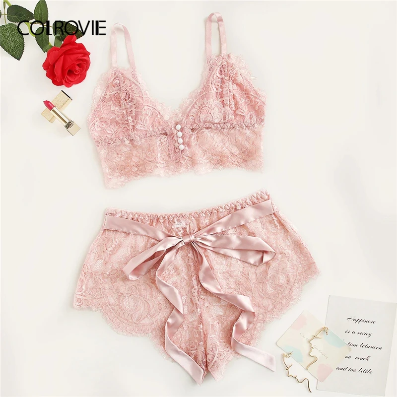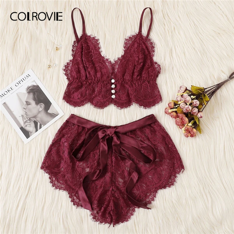 . (Zniżka 42%) Tanie COLROVIE różowa zapiekanka kwiecista koronka komplet bielizny damskiej zestaw piżamy 2019 bordowy Bralettes i figi bielizna nocna seksowna koszula nocna Ceny.