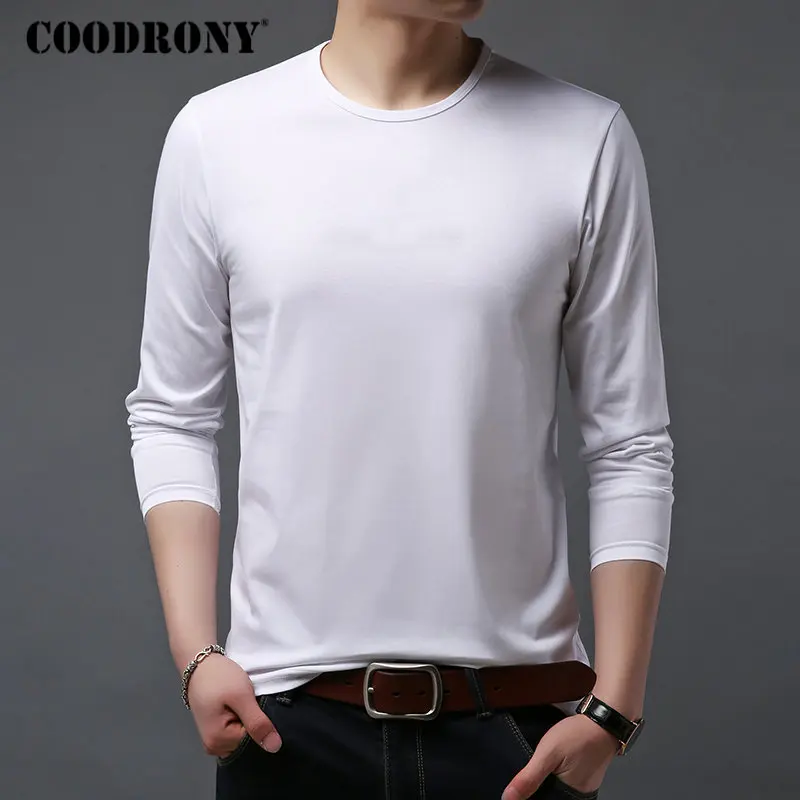 Special Offer COODRONY Classic Casual O Neck koszulka męska koszulka z długim rękawem mężczyźni Multicolor Tshirt miękka bawełniana koszulka długa koszula Homme 95017 Discount 52% Today!