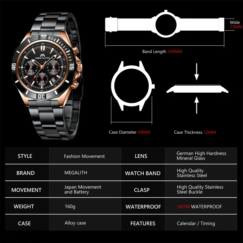. (Zniżka 87%) Skup Relogio Masculino MEGALITH zegarek mężczyźni sport wodoodporny wojskowy zegar kwarcowy chronograf świecący ze stali nierdzewnej zegarki Najtaniej Cena.
