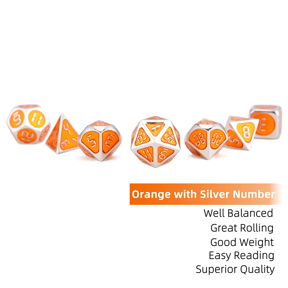 . (Zniżka 0%) Tanie Metalowy wielościenny zestaw kości D D z czarna torba na Tabletop RPGs jak DnD i Pathfinder gra planszowa (pomarańczowe kości) Cena.