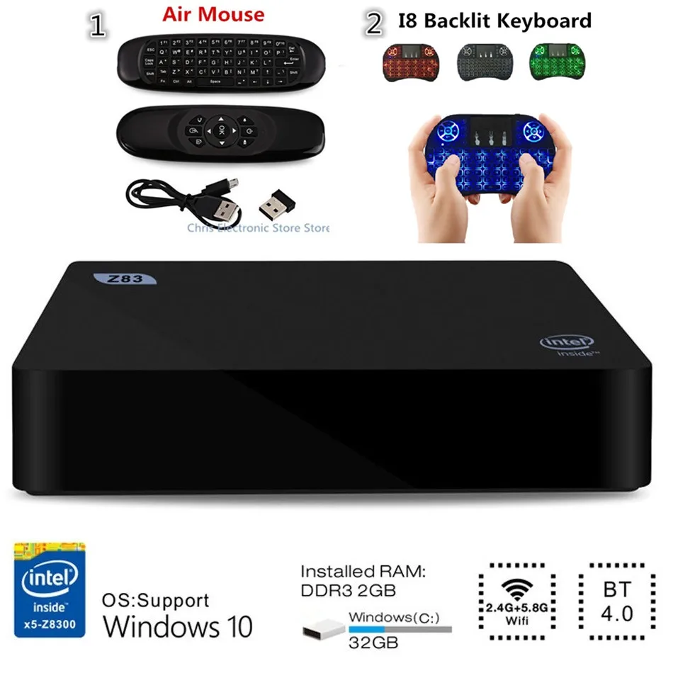 . (Zniżka 16%) Tanie Z83II Mini PC Windows 10 intel atom x5 Z8350 czterordzeniowy 2G 32G 4G 64G smart tv Box 2.4G 5.8G zestaw wifi Top Box MInipc Media Palyer Cena.