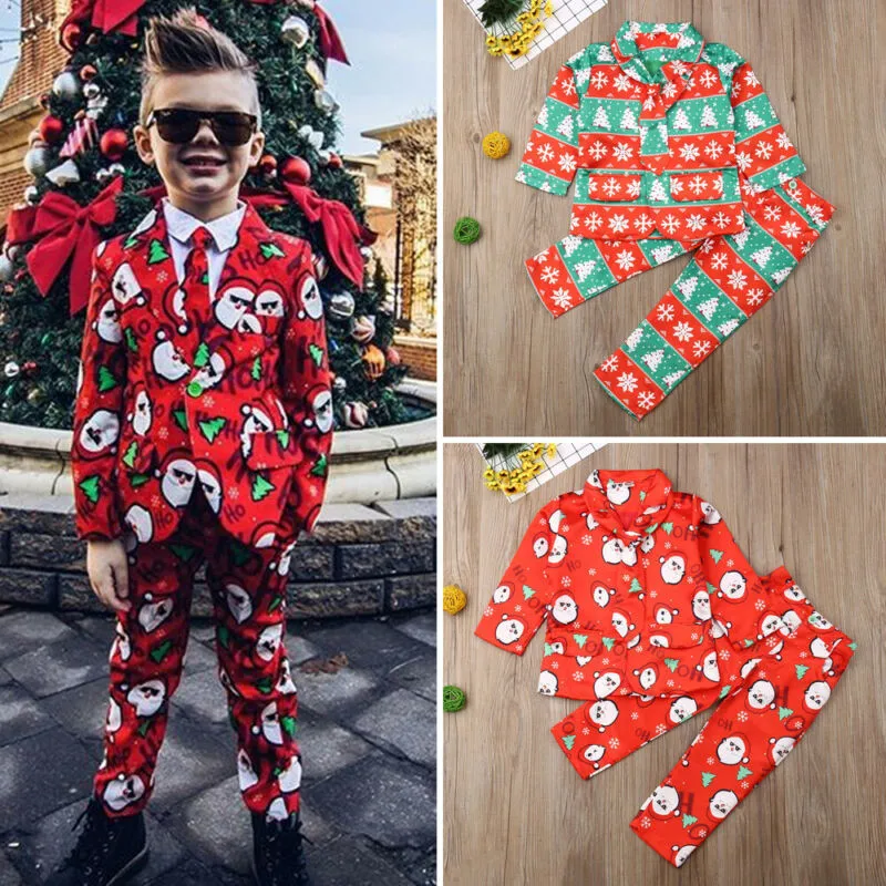 . (Zniżka 30%) Skup 3 8 lat 2019 ubrania świąteczne chłopięce ubrania zestaw nadruk ze świętym mikołajem koszula chłopięce spodnie stroje dziecięce garnitury maluch zestaw odzieży Najtaniej Cena.