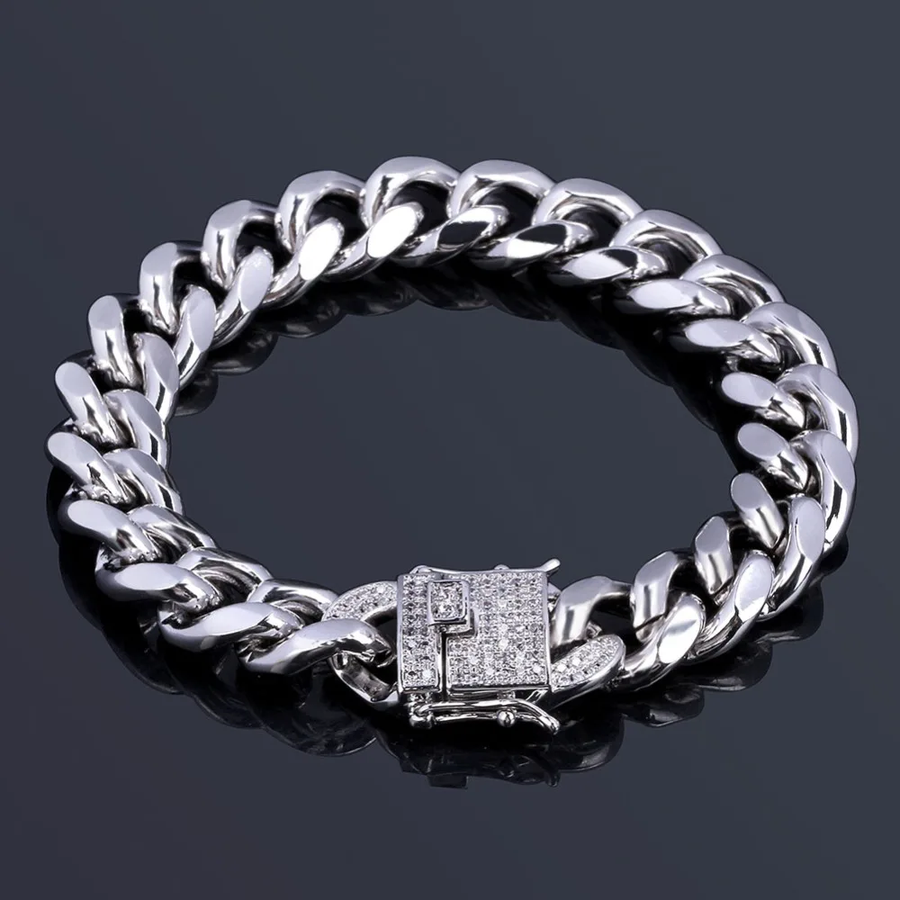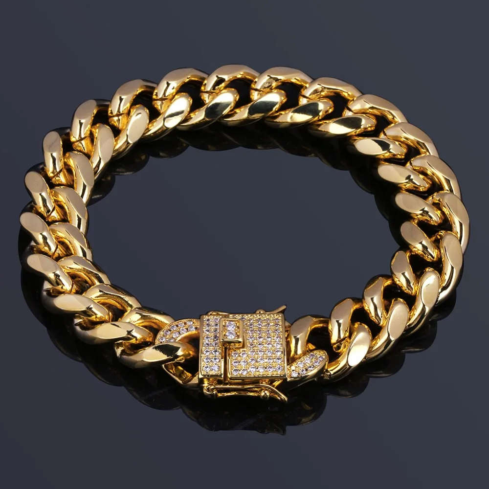 . (Zniżka 30%) Skup Tanie TOPGRILLZ 12mm kolor złoty galwanicznie łańcuch kubański bransoletka z 1ct laboratorium cyrkonia zapięcie Hip Hop bransoletka dla mężczyzn 8\" Cena.