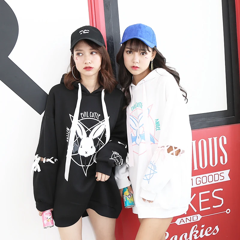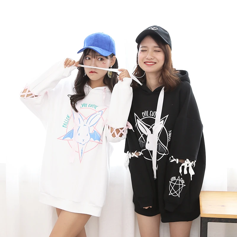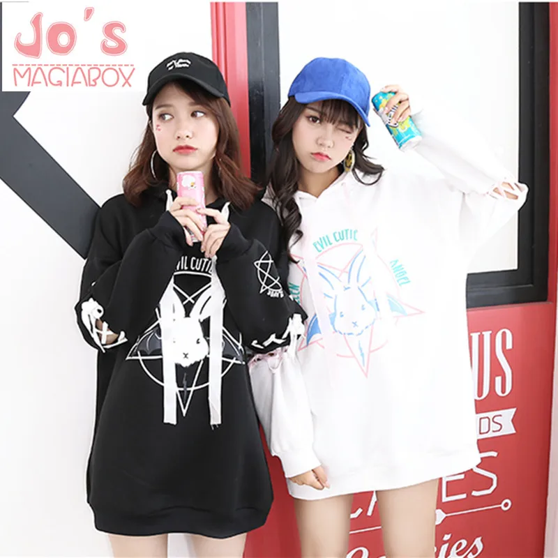 Special Offer Harajuku śliczne Lolita kobiety Tumblr bluza królik pentagram nadruk koronka Up bluzy luźny dres bluza damska Discount 33% Today!