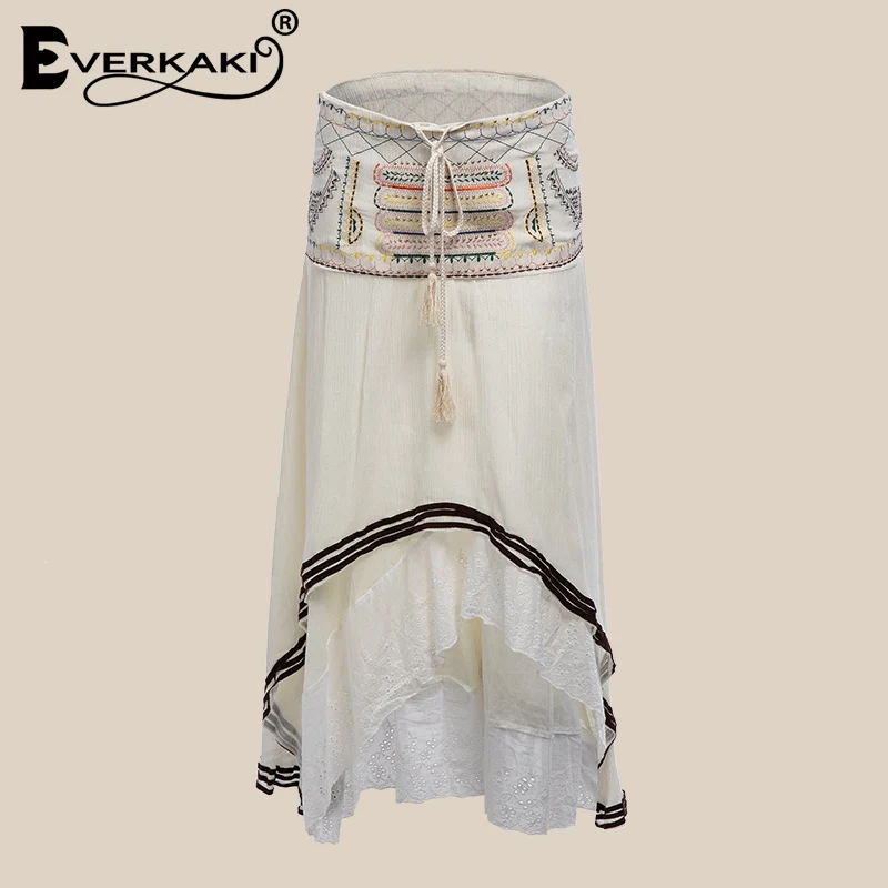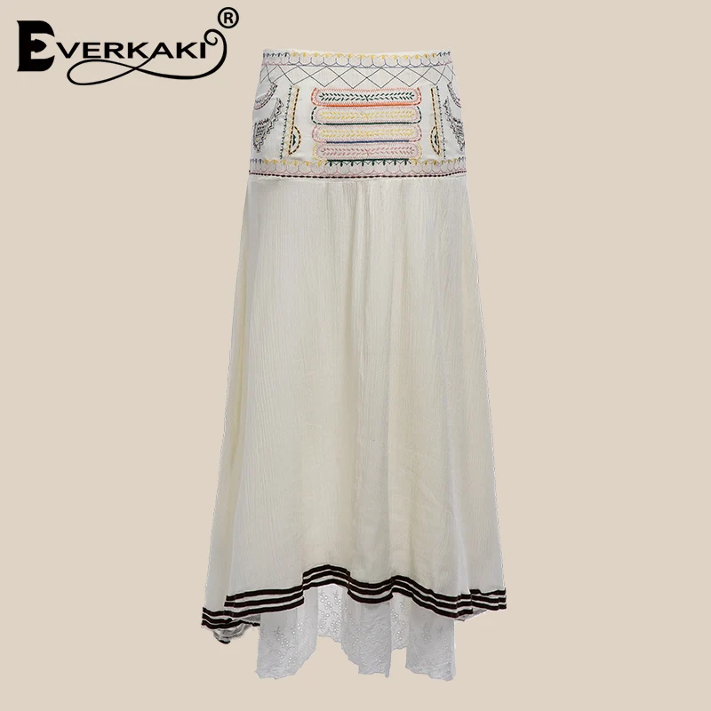 Special Offer Everkaki haft w stylu Boho kobiety Gypsy spódnica letnia bawełna zasznurować plaża Boho długie spódnice kobiece spodnie w stylu casual spódnica 2019 nowy Discount 36% Today!
