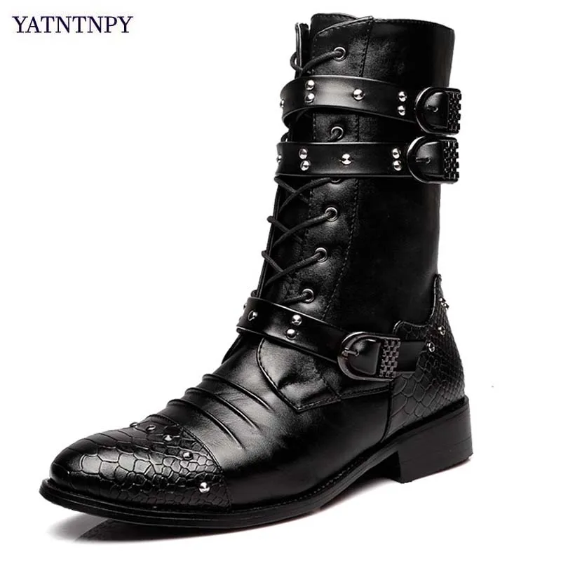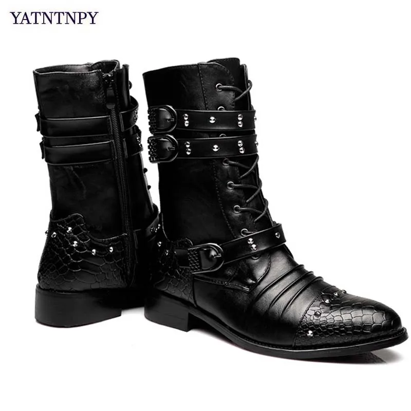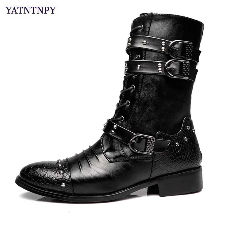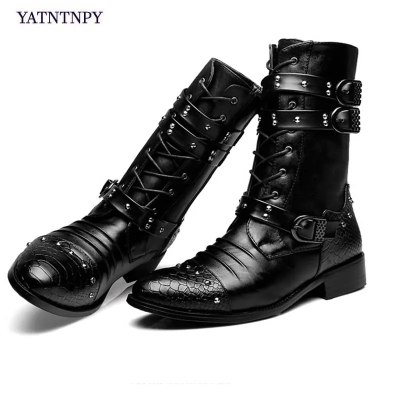 Special Offer YATNTNPY New Arrival mężczyźni buty moda nit wysoki dla Martin buty czarna brytyjska skóra buty człowiek bota zima Discount 40% Today!