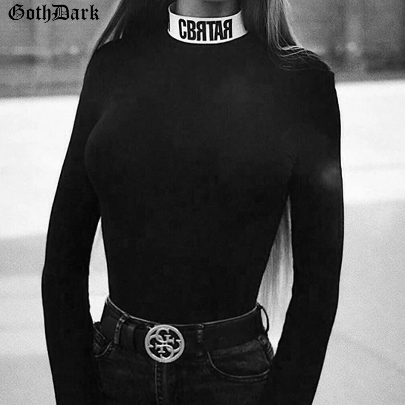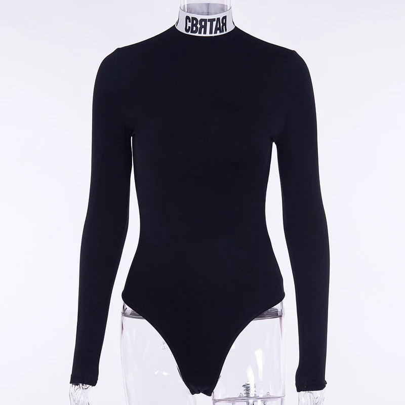 Special Offer Koszulka z golfem z nadrukiem body z długim rękawem dla kobiet bodycon skinny czarna porządna sexy 2019 wiosna playsuits elastyczne body damskie Discount 43% Today!