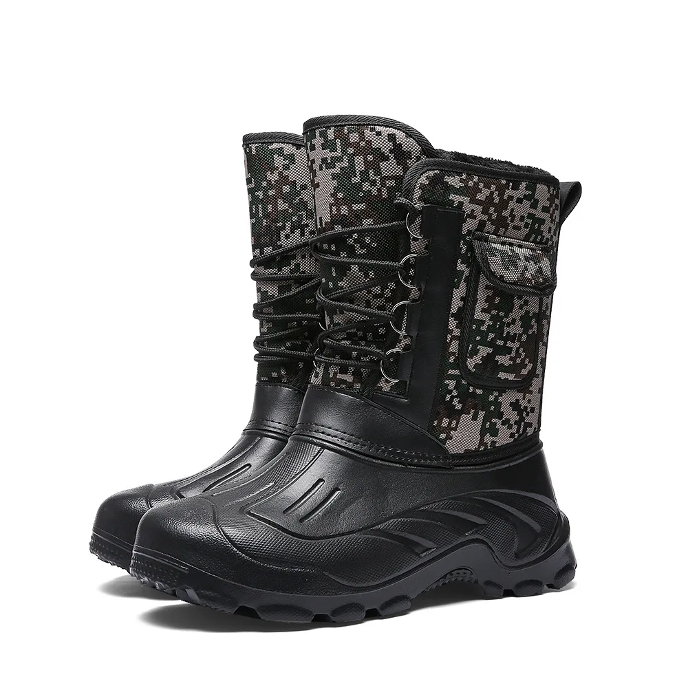 Special Offer Męskie buty wędkarskie Hunter deszcz z futrem wewnątrz wodoodporny kamuflaż zimowe męskie średnio wysokie buty z cholewami ciepłe męskie buty śnieżne buty 2019 Discount 43% Today!