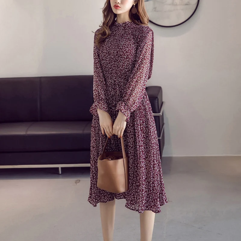 . (Zniżka 47%) Skup Tanie BGTEEVER szyfonowa sukienka w stylu boho jesień luźne plisowane sukienki kobiety line kwiat kwiecisty nadruk Dot kobieta Vestidos Plus rozmiar Cena.
