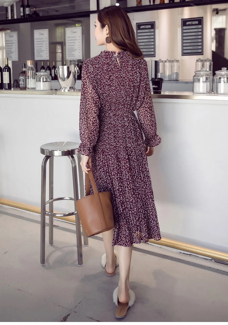 Special Offer BGTEEVER szyfonowa sukienka w stylu boho jesień luźne plisowane sukienki kobiety line kwiat kwiecisty nadruk Dot kobieta Vestidos Plus rozmiar Discount 47% Today!
