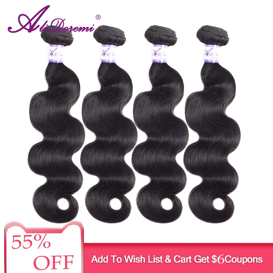Special Offer Brazylijski włosy typu body wave 8 28 in Cal naturalny czarny 1 3 4 wiązki 100% ludzkie włosy wyplata Alidoremi Remy do przedłużania włosów Discount 52% Today!
