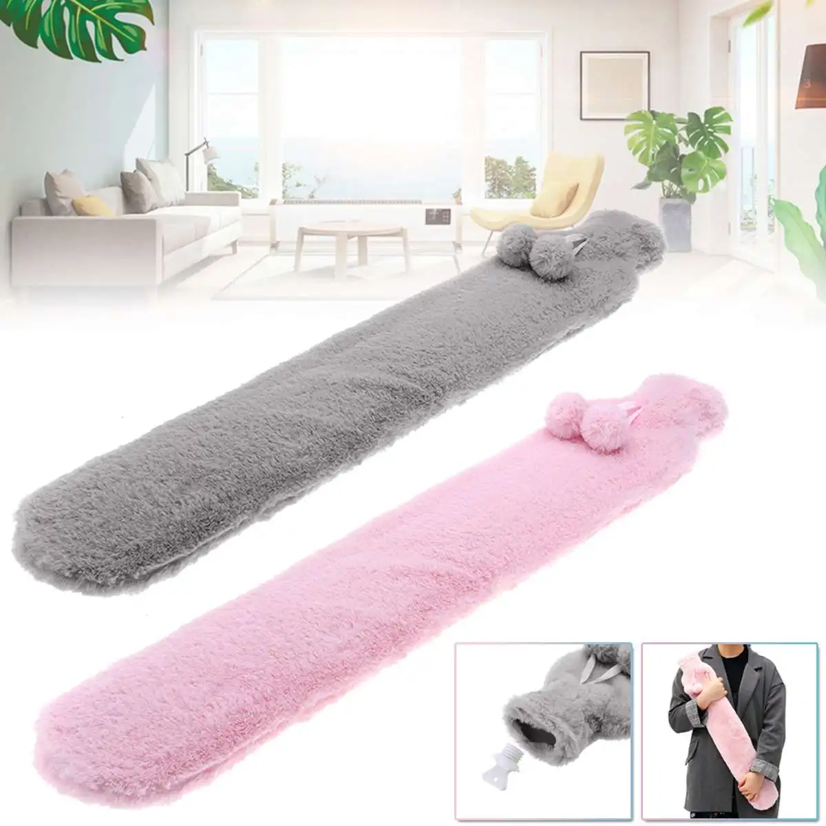 . (Zniżka 55%) Skup 74x14cm różowy szary zdejmowana pokrywa futro guma butelkę z gorącą wodą bardzo długie termofory torba dla talia ręcznie stóp ocieplenie Najtaniej Ceny.