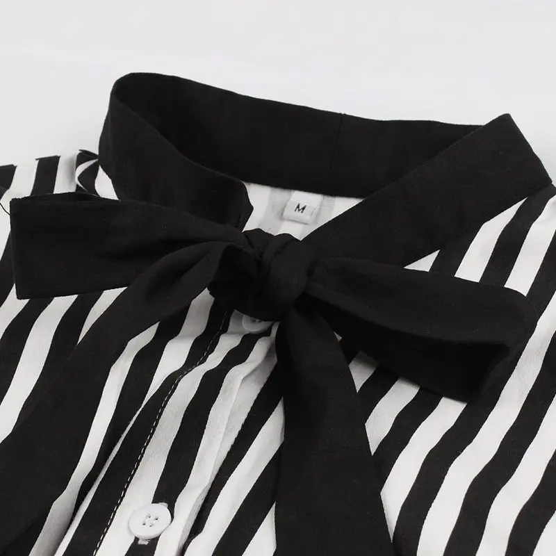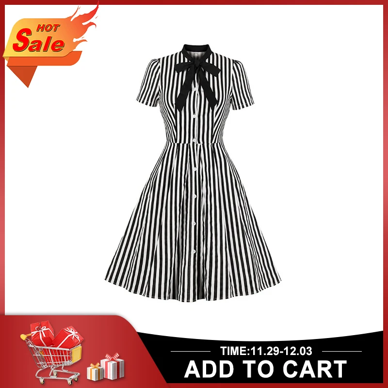 Special Offer Rosetic Vintage Stripe Midi sukienka kobiety lato 50s łuk kołnierz eleganckie biuro Casual stylowe Goth panie Retro sukienki rockabilly Discount 56% Today!