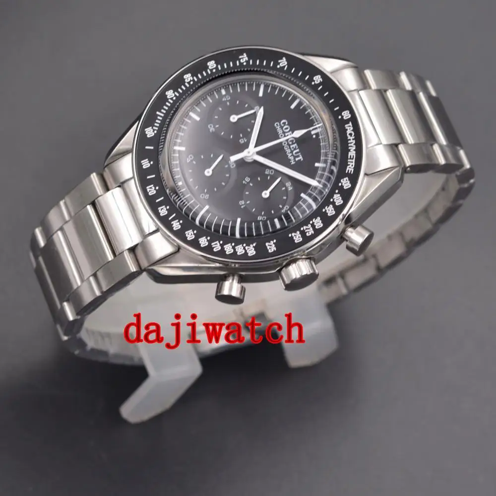 Special Offer 40mm corgeut wielofunkcyjny męski zegarek kwarcowy pełny chronograf czarna tarcza stalowa bransoletka mężczyzn zegarek Discount 28% Today!