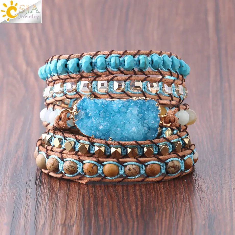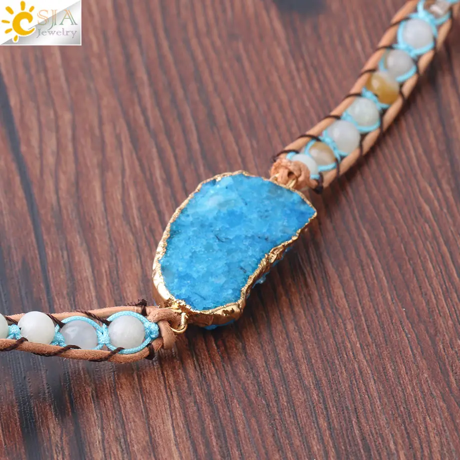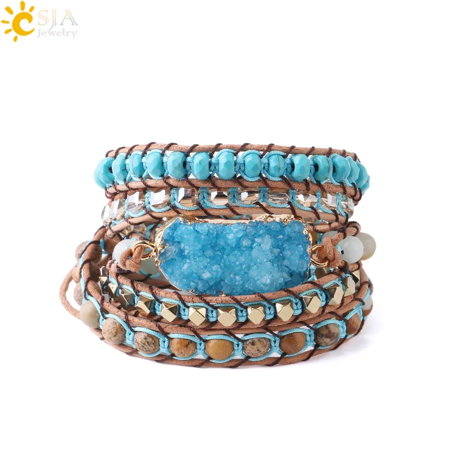 Special Offer CSJA naturalne kamienie kamień bransoletka Druzy Geode kromka biżuteria dla kobiet 5 nici bransoletki moda biżuteria boho S224 Discount 34% Today!