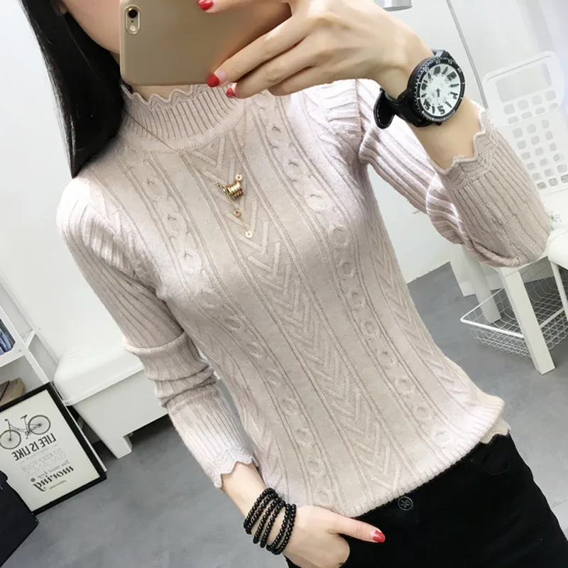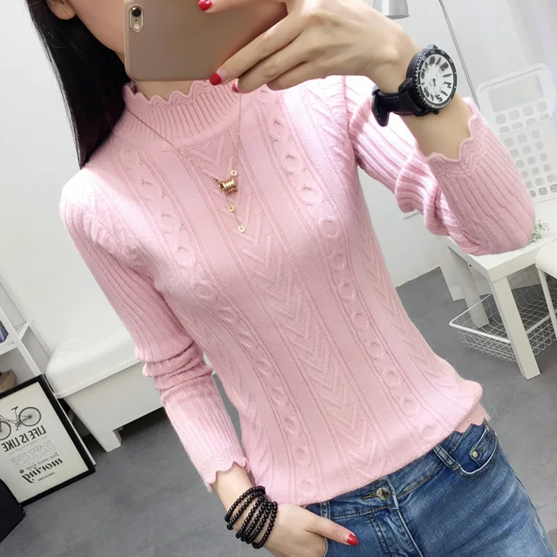 Special Offer W koreańskim stylu na zimę sweter kobiet półgolf początek rękawa długa koszula krótka, slim wąska z dzianiny zagęszczony stałe twist Discount 35% Today!