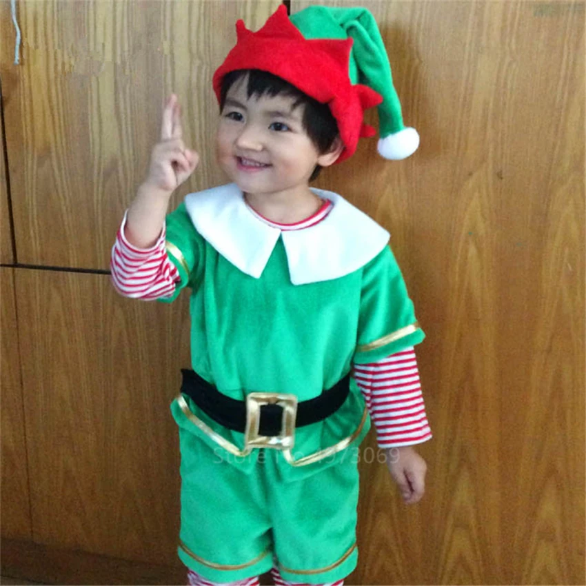 . (Zniżka 39%) Skup Maluch boże narodzenie Cosplay święty mikołaj kostiumy nowy rok Elf Deer Grinch Party chłopcy dziewczęta odzież sportowa z kapeluszem 90 160CM Najtaniej Cena.