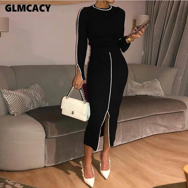 Special Offer Kobiety elegancka, długa bluzka i dół rozdzielona sukienka jesień Casual 2 sukienka eleganckie nowoczesne damskie stroje Streetwear Discount 40% Today!