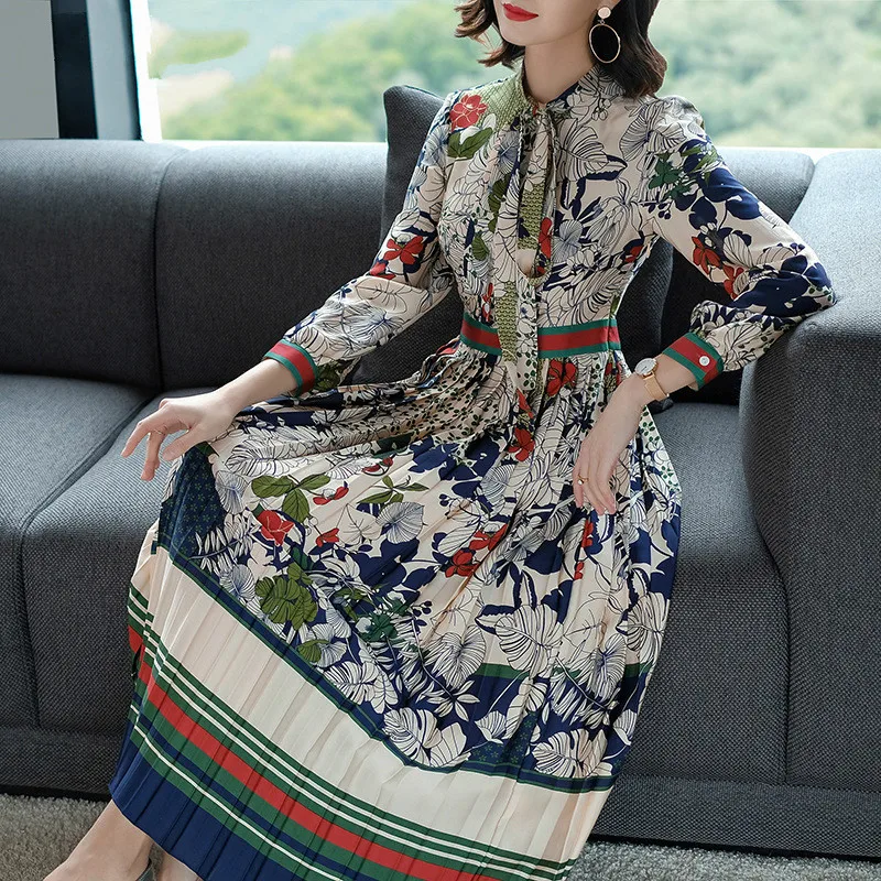 Special Offer 2019 nowa wiosna jesień elegancki duży rozmiar kobiety sukienka wąska talia cienka koronka łuk sukienka na wakacje plisowana, na co dzień Vestidos Gothic Discount 42% Today!
