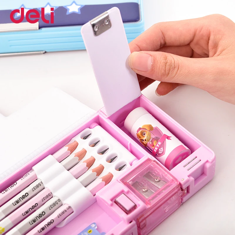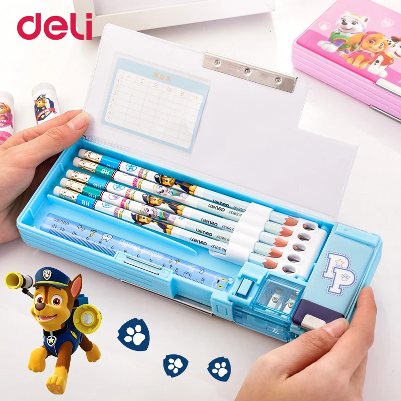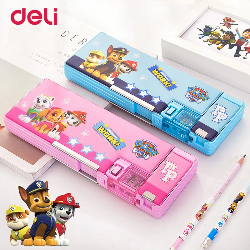 Special Offer Deli Paw patrol pcv środowiska dwukolorowy ołówek ucznia box wielofunkcyjny pojemnik do przechowywania podwójne drzwi podwójne otwarte biurowe prezent Discount 44% Today!