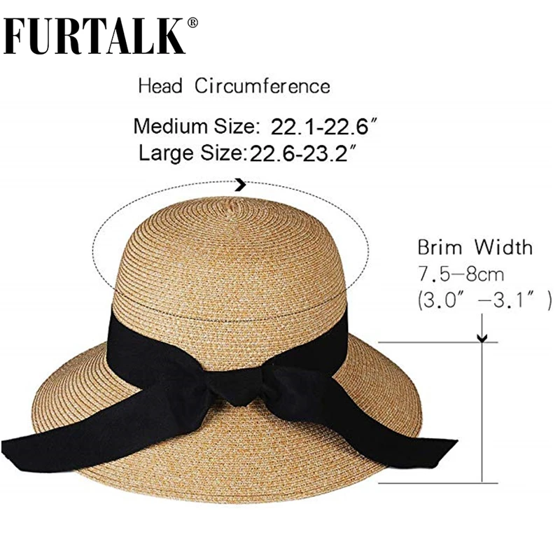 Special Offer FURTALK kapelusz na lato dla kobiet kapelusz przeciwsłoneczny na plażę słomkowy kapelusz panama fedora Cap szerokim rondem ochrona przed promieniowaniem UV kapelusz na lato dla kobiet Discount 48% Today!