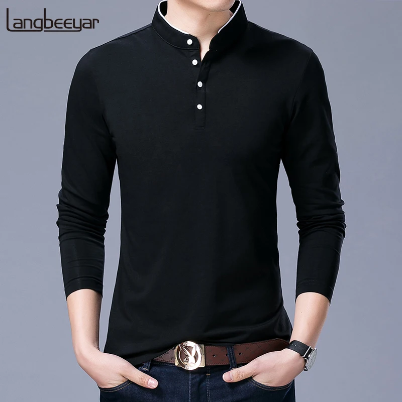 . (Zniżka 51%) Skup Gorący bubel 2019 nowa marka modowa odzież Polo koszula mężczyzna stójka z długim rękawem Slim Fit chłopcy Polo Casual odzież męska Najtaniej Ceny.