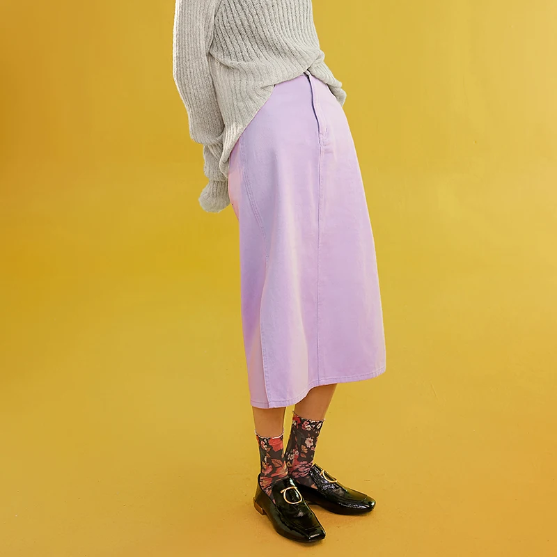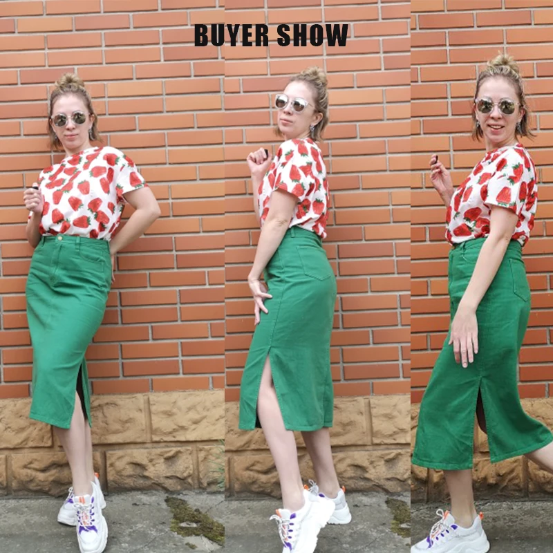 Special Offer Sams Tree damskie spódniczki dżinsowe lato 2019 Vintage solidne proste biuro Lady długa spódnica ołówek połowy łydki Femme spódnica z wysokim stanem Discount 52% Today!